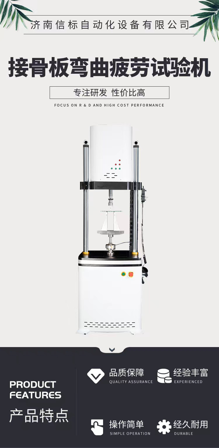 濟南信標自動化設備有限公司主要生產:動靜態萬能疲勞試驗機,接骨板彎曲試驗機,縫合線拉伸疲勞試驗機,髖膝關節磨損試驗機,電子萬能試驗機、液壓萬能試驗機、巖石三軸、四軸,電液拉力試驗機,材料試驗機,高低溫蠕變,高低頻疲勞,拉伸、扭轉、杯突等二十多個系列兩千多個的品種。