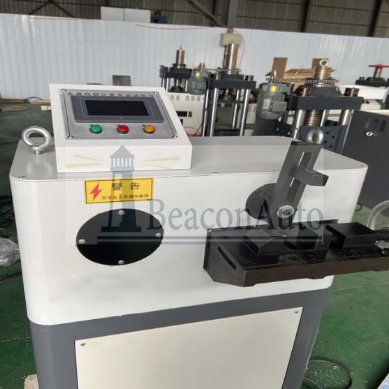 高鐵接觸線反復(fù)彎曲試驗(yàn)機(jī)技術(shù)參數(shù): 產(chǎn)品型號(hào):GWQ-90 反復(fù)彎曲角度: ±90° 反復(fù)彎曲速度: (10~30) 次/分鐘,任意設(shè)置 反復(fù)彎曲次數(shù):1~9999,任意設(shè)置 砝碼托架:5kg 6) 砝碼:5kg×4、2.5kg×1、1.0 kg×1 彎曲輪半徑:50mm,75mm、100mm、150mm (根據(jù)試驗(yàn)要求更換) 光纜夾具至輪盤(pán)切點(diǎn)距離:250mm、500mm、1000mm, (可自行調(diào)節(jié)) 可單機(jī)獨(dú)立開(kāi)始試驗(yàn),也可計(jì)算機(jī)遠(yuǎn)程控制開(kāi)始試驗(yàn),反復(fù)彎曲次數(shù)自動(dòng)記錄,試驗(yàn)結(jié)束后自動(dòng)停止。 重量:600kg 高鐵接觸線反復(fù)彎曲試驗(yàn)機(jī)安裝要求: 1) 電源:?jiǎn)蜗啵?/span>AC220V±10%,50~60Hz,0.8kW。 2) 安裝在穩(wěn)固的基礎(chǔ)上,周?chē)舨恍∮?1 米的空間。 3) 環(huán)境溫度:25℃±10℃ ,濕度: ≤80%不結(jié)露。 室內(nèi)無(wú)振動(dòng)、無(wú)腐蝕性介質(zhì). 安裝條件: 安裝在穩(wěn)固的基礎(chǔ)上,底座及機(jī)架水平度≤0.2/1000,底座四角膨脹螺釘固定; 周?chē)粲胁恍∮?/span>1m 的空間; 室內(nèi)清潔、干燥、無(wú)振動(dòng)和腐蝕性氣體; 電源 AC220V/50Hz,電壓波動(dòng)不超過(guò)額定值的±10%; 電網(wǎng)無(wú)干擾雜波,周?chē)鸁o(wú)大電流頻繁啟停的用電設(shè)備; (6) 可工作溫度 10°~35° ,濕度 75%以內(nèi) 標(biāo)簽:高鐵接觸線反復(fù)彎曲試驗(yàn)機(jī)裸電線鋼管反復(fù)彎折耐用測(cè)試機(jī)