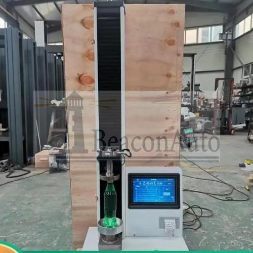 WDY-1塑料瓶子壓力試驗機 產品型號:WDY-1 產品用途:WDY-1塑料瓶子壓力試驗機用于檢測PET瓶的頂壓強度、頂壓變形、平壓強度和側壓強度。廣泛應用于橡膠、塑料、紡織物、防水材料、無紡布等非金屬材料及金屬絲、金屬箔、金屬片的壓縮力學性能試驗。 塑料瓶子壓力試驗機 礦泉水瓶頂壓平壓側壓強度測試儀產品特點: 1、采用高精度、全數字調速系統及精密減速機, 驅動精密絲杠副進行試驗,實現試驗速度的大范圍調節, 試驗過程噪音低、運行平穩。 2、萬向節采用十字插銷結構,而且具有擺角限制功能, 一方面便于試樣夾持,保證試驗同心度, 另一方面很好的消除了不規則試樣對傳感器的影響。 3、觸摸鍵操作方式,液晶顯示器實時顯示。 顯示界面可顯示試驗方法選擇界面、試驗參數選擇界面、試驗操作及結果顯示界面和曲線顯示界面,方便快捷。 4、可實現試樣裝夾時橫梁快慢升降調整,具有過流、過壓、過載等保護裝置。 5、選配微機接口,可外接微機實現試驗過程的控制及數據的存儲、打印。